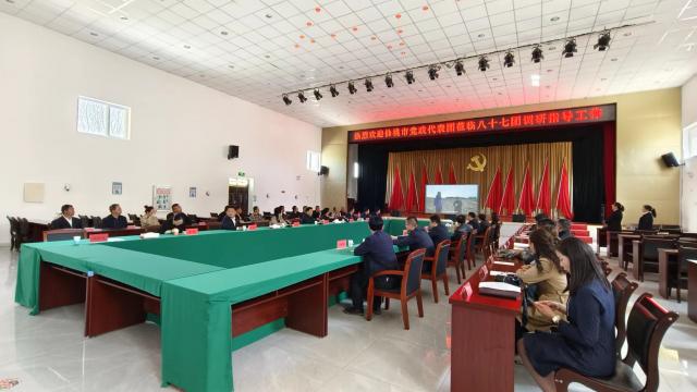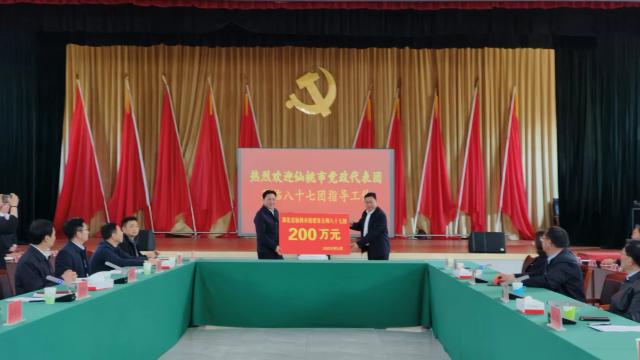 首先,八十七团团长梁勇向仙桃市党政代表团介绍了八十七团的基本情况,并通过观看八十七团经济社会发展汇报片、援疆工作专题片,让大家对八十七团的经济社会发展状况有了更为深入地了解。随后,仙桃市委书记罗联峰同志代表仙桃市委市政府捐赠200万元援建资金,团党委书记、政委王栋同志代表团党委接受捐赠。罗联峰表示,仙桃市委认真贯彻落实省委决策部署,把援疆工作作为光荣使命,坚决扛牢起对口援疆重大政治责任,用心用情用力做好新时代对口援疆工作。仙桃市将以此次考察援疆工作为契机,进一步加强产业援疆、人才援疆,全面推进仙桃与八十七团的产业合作,推动八十七团优质农副产品进入仙桃市场,进一步加强人才交流,实现两地互利共赢发展,共同开创新时代对口援疆工作新局面。