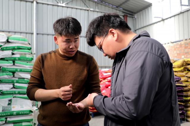 4月8日一大早,王易博就来到客户家中,了解农资储备情况。2022年大学毕业后,他曾在重庆工作,积累了丰富的市场经验和商业知识。然而,他始终心系家乡,希望能为家乡的发展贡献自己的力量。