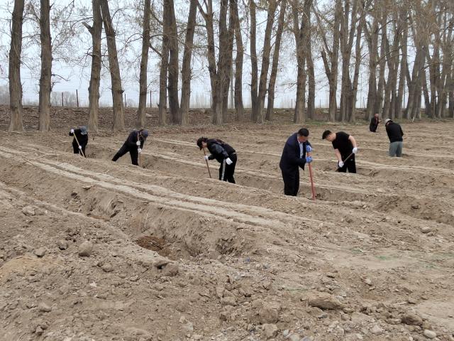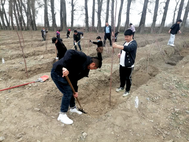 为深入贯彻党的二十大精神和习近平生态文明思想,践行“绿水青山就是金山银山”的理念,在团场树立“植绿、爱绿、护绿”的生态文明新风尚,4月16日,八十七团组织机关各部门全体工作人员参加义务植树造林活动。