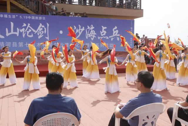 开幕式上,兵地共同带来了精彩的节目,舞蹈《舞动天地》《和谐之花》展现了职工群众的幸福生活,百花争艳的汉服展示为活动注入了绚丽的民俗文化。特色商品展、骆驼烧烤、大胃王比赛等系列活动更是给游客带来了别样的沙海体验。