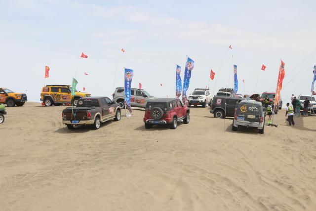 本届文化旅游季的“重头戏”是精河县木特塔尔沙漠景区举行的沙漠越野赛,来自各地的28个车队、104辆越野车齐聚于此,今年赛事与以往不同,赛道全程约75公里,设有12个打卡点,沿途地形复杂,对参赛车手技术水平是严峻的考验。赛事为T2拉力赛,分为量产车组和改装车组,各参赛队以两车一组为单位,按每组最后一名到达指定地点为最终成绩。