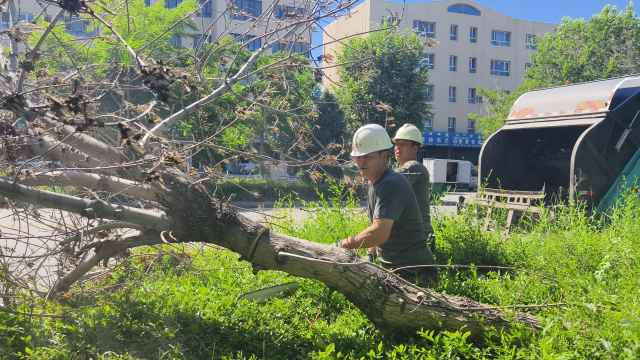 道路两旁的行道树是一道绿色风景线,具有调节空气、降低灰尘污染等功能。但是,若是受到大风天气、病虫害或外力的影响,绿树也会“生病”,出现断裂枝、病枯枝甚至整株衰退枯死等现象,个别高大、根系生长较浅的树木还存在倒伏的危险,不仅影响道路“颜值”,也成为居民安全出行的潜在威胁。因此,5月27日至28日双河城建集团市政公司博乐分公司工作人员对辖区内行道树中的枯树病死树进行修剪处理,排除出行安全隐患。