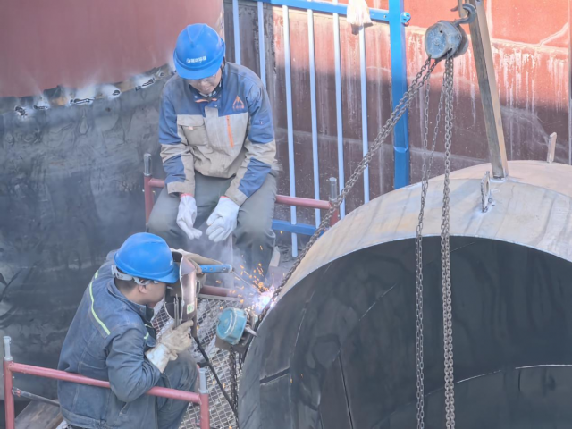在二热源,沿着1#、2#、3#脱硫塔环形升级改造平台,从检修口往里看去,脱硫塔内焊花飞溅,只见工作人员相互配合,正在拆除除雾器到加装支撑梁、喷淋管支架等设施。负责人宋志翔介绍说,受脱硫浆液、酸性气体侵蚀,脱硫塔内部设施及外部环形步道平台遭到一定腐蚀,今年公司组织人员及时更新、修复,保障设备运行工况良好,将排放浓度达到超低排放标准,为环保达标排放打造了坚实的基础。另一处检修现场,为解决空预器管路灰垢附着严重、清除难度大、垢下腐蚀持续加重情况,工作人员正在开展管路更新作业……