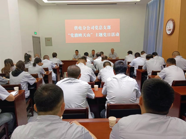 为扎实有序推进党纪学习教育,进一步加强能源集团供电分公司党员干部的廉洁意识和作风建设,提高党员干部的廉洁自律能力,5月下旬,供电分公司党总支部开展“党旗映天山”主题党日活动,公司领导班子成员、各基层党支部书记、所长、机关全体党员、入党积极分子共39人参加。