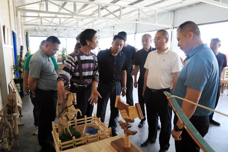 走进该村手工艺木雕作坊,一件件复古的木雕工艺,让大家一饱眼福,制作的独轮车、防线车、风箱、织布机、桌椅等,既有观赏价值,也有适用价值,上百种手工艺作品,件件雕刻精细,生动逼真,栩栩如生。在工匠师傅徐连刚的讲解下,大家领略从中的奥秘。