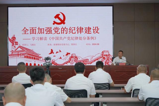 6月13日,新赛股份党委书记、董事长马晓宏以《学党纪筑牢规矩“防火墙”使守纪律、讲规矩成为行动自觉》为题,通过线上 线下方式讲授了“强党纪意识,筑思想防线”纪律教育专题党课,公司党委委员、权属企业管理人员及总部全体80余人参加此次学习。