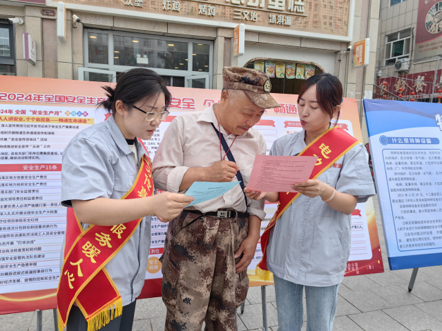 在6月14日电力安全月咨询日这一天,能源集团供电分公司塔斯尔海供电所与师市各单位开展安全咨询活动,在活动现场,能源集团设立了电力咨询平台,通过电力展板、发放电力宣传册宣传电力安全知识,营造了浓厚的电力安全宣传氛围。
