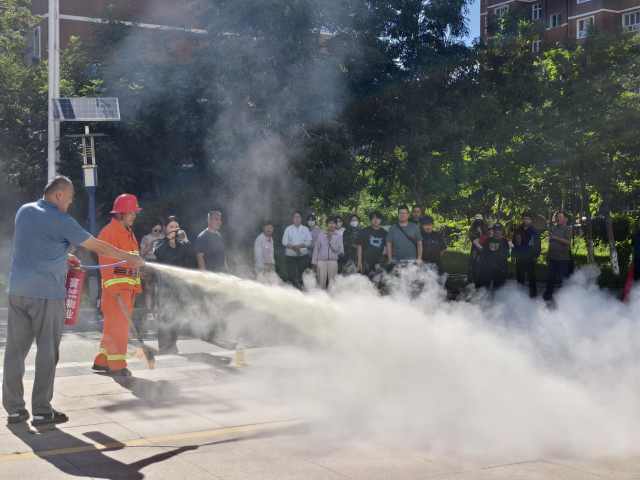 理论讲解后,活动的重点转向了灭火器的实际操作。李雪峰首先演示了正确使用灭火器的步骤,包括确认安全环境、拔掉保险销、对准火源的基部以及均匀喷射的技巧。随后,团员青年们在指导下进行了分组练习,每位参与者都有机会亲自操作灭火器,确保每个人都能熟练掌握操作流程。