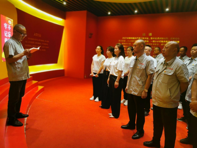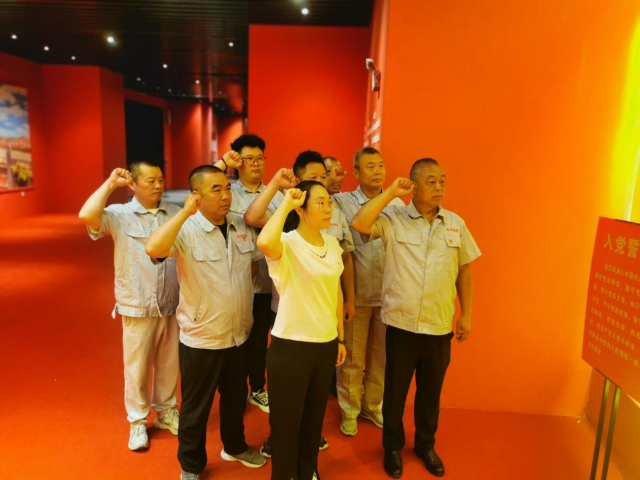 在党史馆内,全体党员回顾了中国共产党不折不挠、英勇奋斗的发展历程。党总支书记黄会忠为全体党员干部上了一堂题为《严守规矩正风肃纪》的专题党课,引领党员干部强化执行意识,树立真抓实干的良好风气。随后,全体党员在鲜红的党旗下举起右手,进行庄严宣誓,重温入党初心。激励党员干部在自己的工作中,以共产党员的标准严格要求自己,为党的旗帜增添光彩。