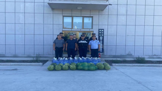第97个“八一”建军节即将来临之际,双河工建特种设备安装租赁公司向第五师双河市荆楚工业区便民警务站警务人员送清凉、献爱心,为他们送去消暑慰问物资和节日祝福。