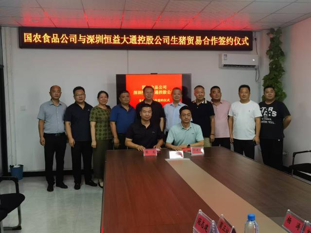 8月3日,新疆双河国农食品有限公司董事长柴龙,在该公司与深圳恒益大通控股有限公司董事长祁建伟签订了生猪贸易合作框架协议。