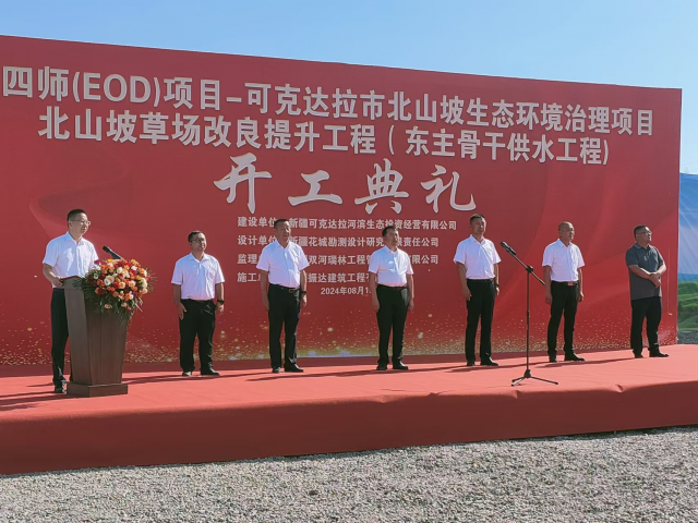 8月15日,新疆生产建设兵团第四师可克达拉市生态环境质量提升与绿色产业融合开发(EOD)项目-北山坡草场改良提升工程(东主骨干供水工程)举行开工典礼。
