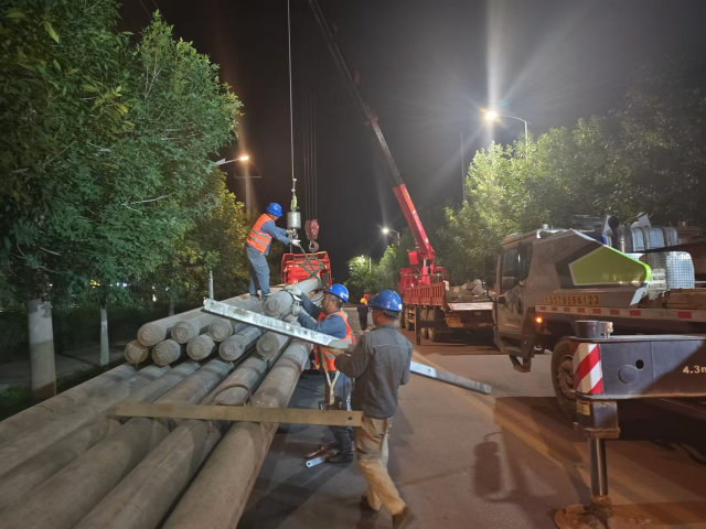 在改造前期,供电分公司项目负责人多次对施工现场及线路进行实地勘察,了解具体情况,多次与五师双河市和博乐市相关部门进行沟通协调,完成对五师博乐城区长江路、建国路、团结路的审批手续,使工程顺利按期开工。由于此次施工路段地下情况复杂、停电面积广、涉及用户多、施工难度大等诸多困难,供电分公司与博能公司多次研究,制定施工方案,减少线路改造期间给居民带来的不便,博能公司施工队利用夜间用电负荷低谷时段,对二热源专线进行升级改造。在施工中,建国路供电所提前通知用户做好停电准备,并给施工单位做好停送电工作,全程监督管控安全技术交底及施工质量,要求施工单位明确各工序现场人员职责,设置好施工路段警示标志,做好现场安全控制措施,有效确保按时完成夜间施工计划,白天如期恢复送电工作。