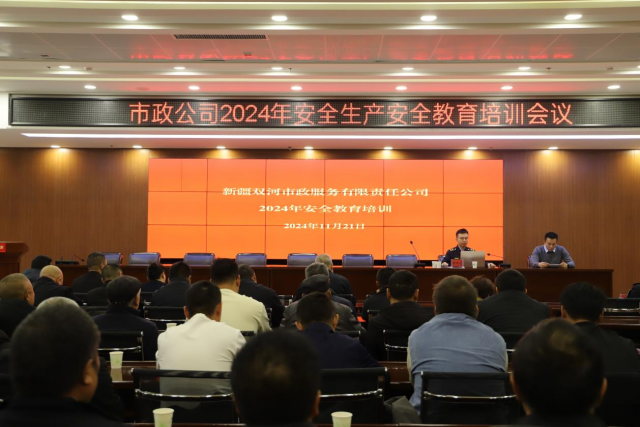 为深入贯彻落实党的二十届三中全会精神和习近平总书记关于安全生产重要论述,进一步夯实安全生产工作基础,全面提升安全生产管理水平和应急处置能力,11月21日,双河城建集团市政公司在建设大厦三楼会议室组织开展安全生产教育培训会议。此次活动特邀第五师应急管理局综合行政执法支队杜世元、李小龙、张宇哲三位同志进行授课。市政公司领导班子、各部门负责人,各工作站、分公司负责人、副经理及安全生产相关负责同志57余人参加。