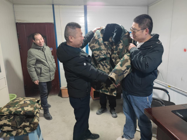 活动上,王卫星同志详细了解职工的工作生活情况,倾听他们的心声和需求,充分肯定了项目部自开工以来,克服困难,精心组织,安全有效地推进工程建设,对大家不畏严寒、奋战在施工一线的辛勤劳动表示慰问,并将防寒服发放到他们手中,嘱咐他们要在冬季施工期间注意保暖、注意安全,把防寒保暖工作和劳动安全保障措施落实到每一个环节,牢固树立安全意识,全面做好冬季施工安全防护工作。