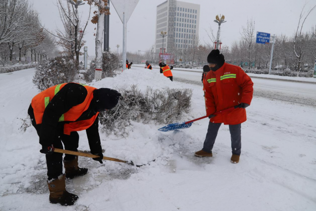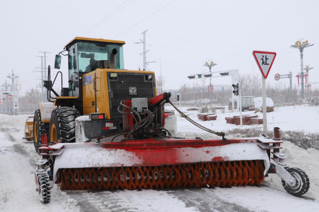 清雪现场,扫雪车有序前进,地毯式清扫路面,而分布在城市各个角落的“橙色战士”环卫工则不惧风雪、不畏严寒、分工有序、斗志昂扬,你铲我推的相互配合着,他们以汗水和实干为居民扫出了一条条方便通行的暖心路。此外,该公司以初雪为令,立即统筹协调各团场工作站,启动清雪应急预案,时刻做好清雪准备工作。