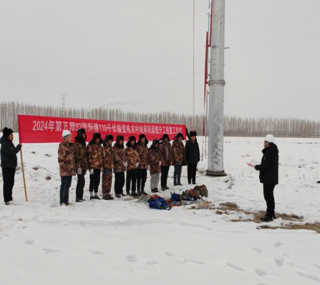 2月27日上午,在2024年第五师82团新建110千伏输变电农村电网巩固提升工程项目施工现场,博能公司组织参建单位举行项目复工复产仪式,施工现场人员精神饱满,以崭新的面貌和满腔的热情,迅速投身于生产热潮之中。