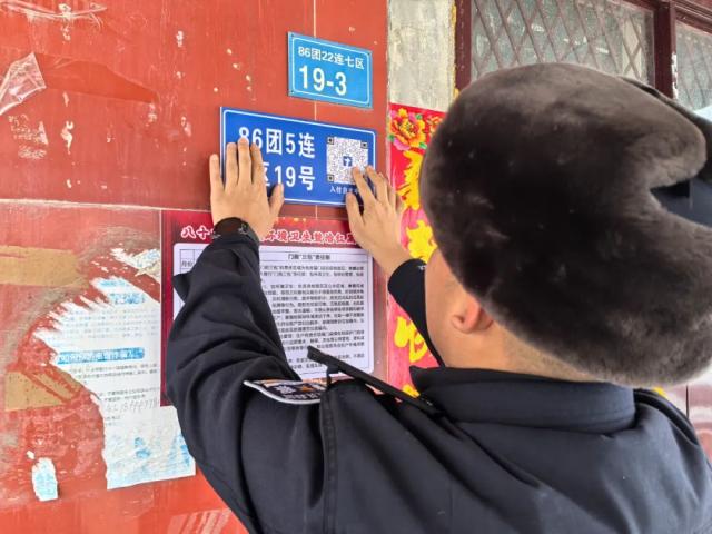86团22连辖区位于兵地结合部、城乡结合处,因交通便利,每年都吸引了大量流动人口流入辖区租住。“过去登记租客信息、房东嫌麻烦、数据更新慢,安全隐患像‘地雷’一样埋着。”22连警务室民警米安鑫翻出泛黄的登记本,道出开发二维码门牌的初衷。一次走访中,房东刘叔抱怨:“租客换人三四天了,我腿脚不便,平时地里也忙,实在跑不动了!”这句话深深触动了米安鑫。