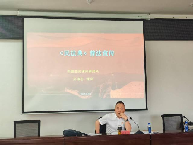 为深入学习贯彻习近平法治思想、厚植法治根基,充分发挥“社区警校”作用,4月10日,九十团特邀新疆鼎驰律师事务所主任孙涛志,为民警、调解员、网格员及连队社区两委带来民法典普法宣讲,以法治力量赋能基层治理。