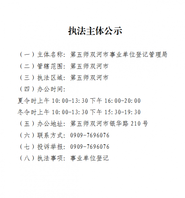 第五师事业单位登记管理局-执法主体公示