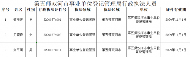 第五师事业单位登记管理局-执法人员公示