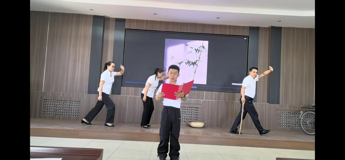 粮作研究室、果蔬研究室、办公室三个部门携手以《廉洁之光》为主题进行集体朗诵,发出时代强音。他们深情回溯历史长河中“以廉为镜”、“心如明镜,不染尘埃”的先贤风骨,赞颂“一身正气,两袖清风”的崇高品格,深刻诠释“不贪为宝”的精神真谛。最终,全体激昂合诵要在廉洁道路上“书写更加辉煌的篇章”。朗诵者以饱满的热情和激昂的语调,将廉洁文化与红色基因相融合,激发了在场党员干部的共鸣与反思。