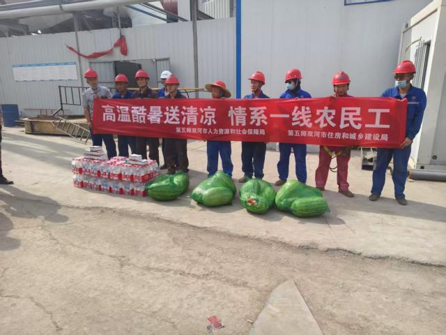 为切实做好高温天气劳动保护工作,传递对一线农民工的关怀。近日,师市人社局联合住建局赴师市多个用人单位和项目工地开展“高温酷暑送清凉情系一线农民工”慰问活动,为师市一线农民工送去夏日里的清凉与关怀。