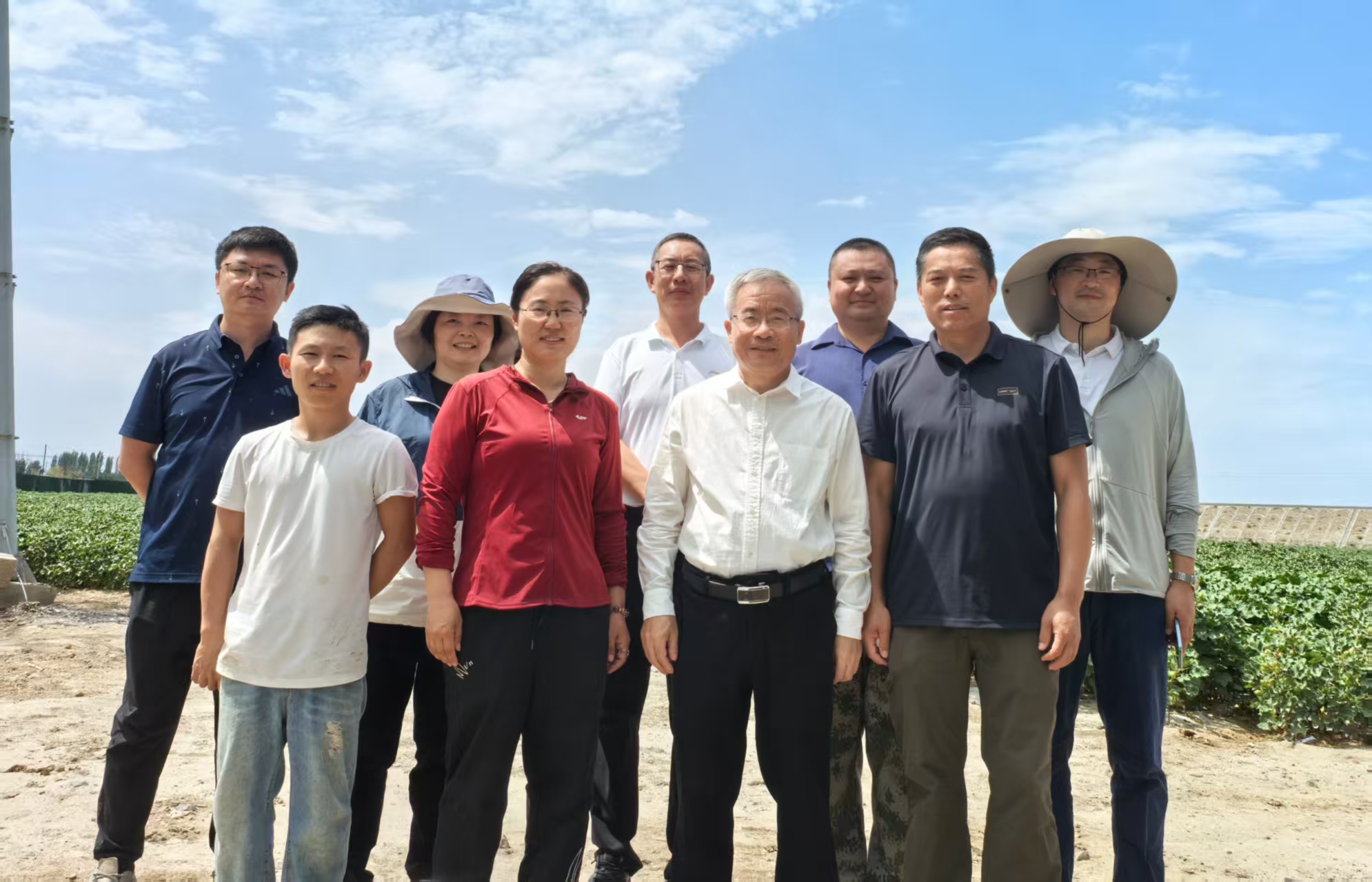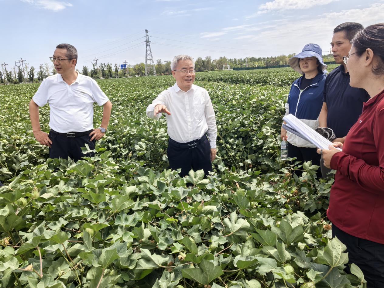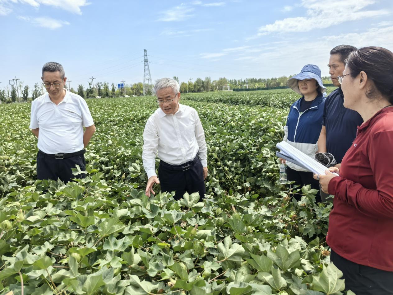 张献龙院士一边认真倾听介绍,一边俯身仔细观察棉花的生长状况,不时用手触摸棉叶、棉铃,询问相关技术细节。他对五师农科所在棉花科研和种植方面取得的成绩给予了高度评价,认为试验田的品种布局科学、管理精细,为当地棉花产业发展提供了有力的技术支撑。
