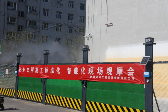 双河工建公司通过PPT演示及现场实操,介绍五大标准化创新举措:一是装配式围挡实现模块化安装,重复利用率超90%,减少建筑垃圾90%;二是围挡喷淋系统24小时抑尘,降低扬尘达90%;三是EP系列移动电源替代传统发电机,解决临时用电难题,实现“零排放、低噪音”;四是采用具有智能语音提醒的临边防护;五是采用盘扣式防护棚,搭建和拆除高效快捷,减少时间成本,兼顾安全性与重复使用性。同时,探索“机器人产业工人”新型作业模式,引入外墙喷涂机器人,实现三大突破:施工效率达120-170㎡/h,24小时不间断作业,节省人工成本30%;动态位置补偿技术使质量合格率从人工施工的85%提升至95%;替代高空吊篮人工作业,消除坠落与有毒气体侵害风险,切实提高安全管理水平。