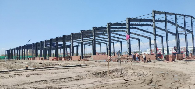 该项目是师市推动产业升级、促进经济高质量发展的重点工程之一。项目规划建设10万平方米的标准化厂房,旨在打造集农产品精深加工、仓储物流、科技研发等多功能于一体的现代化产业园区。此次钢结构施工的启动,是项目从基础建设迈向主体施工的关键节点,为后续的设备安装、调试和投产运营奠定了坚实基础。
