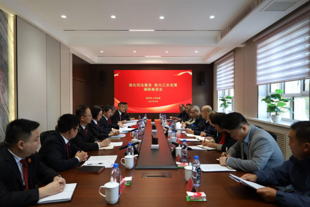双河市人民法院院长李志凤向调研组介绍了法院的基本情况,就“深化司法服务助力‘三农’发展”工作作了专题汇报,调研组围绕调研主题与法院法官、执行人员、涉农部门(农业农村局)、职工群职工代表、人民陪审员代表等人员进行了座谈交流。