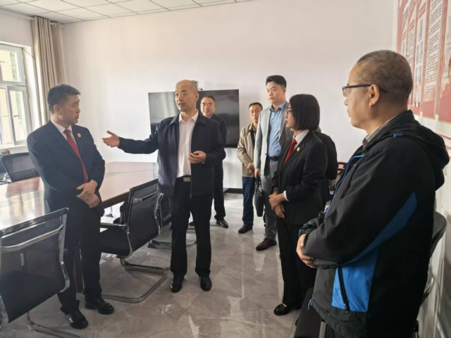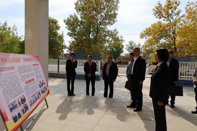 (图为调研组深入九十团塔格特人民法庭实地了解参与基层社会治理、服务职工群众情况)