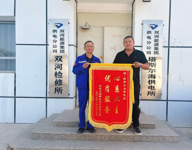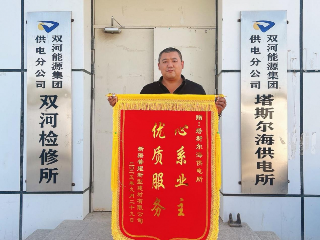 近日,新疆普耀新型建材有限公司将一面印有“心系业主优质服务”的锦旗送到双河能源集团供电分公司塔斯尔海供电所,这不仅是对供电所工作的肯定,更是对其长期以来坚持“人民电业为人民”服务宗旨的最好诠释。