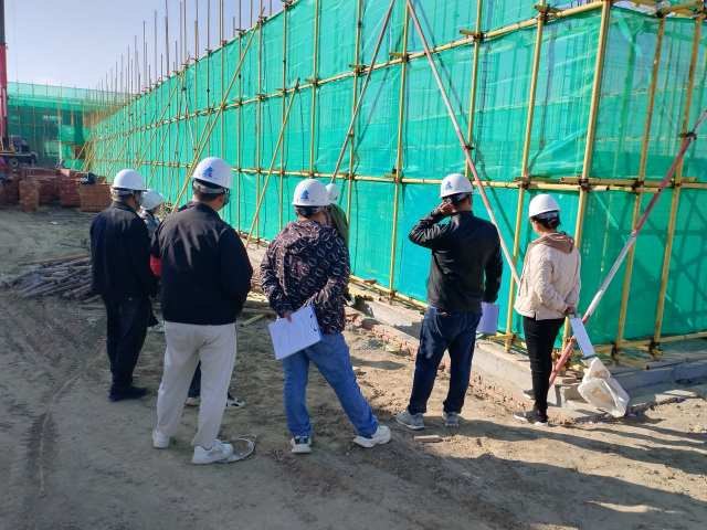 培训中,分公司党支部牵头成立“党员实训先锋队”,将党建要求与安全质量目标深度融合。在安全隐患排查模块,直击临时用电、消防设施、临边防护等高频风险点,由党员副经理脱正栋带队,以“党员示范岗”为标杆深入在建工地,手把手教学隐患识别方法,同步讲解“党建 安全”责任体系建设要求,现场演示“查、改、验”闭环管理流程,既助力参训人员练就隐患排查“火眼金睛”,更强化“党员带头守安全、全员跟着抓质量”的责任意识。针对脚手架搭设这一关键工序,拆解立杆间距、扫地杆设置等核心技术要求,党员率先示范标准操作,实时纠正不规范行为,让参训人员在实操中深刻理解“规范标准”与“安全底线”的关联,将党建引领的组织优势转化为安全质量管控的实践优势。