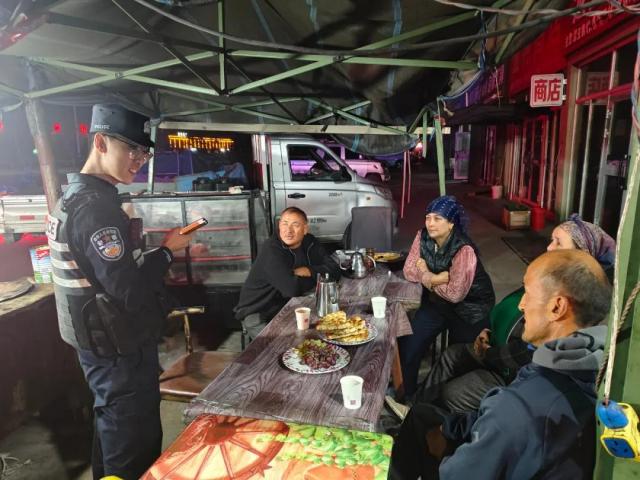 晚饭聚餐人数增多,民警向群众提示少喝酒、喝酒不开车,避免群众因过量饮酒造成不可挽回的后果。