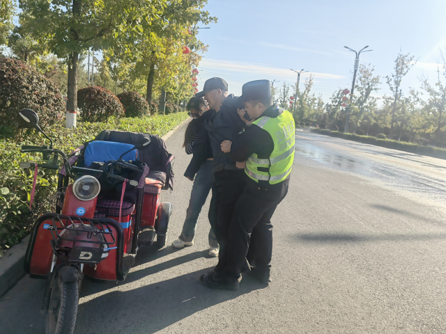 最是温情动人心。一日巡查途中,执法人员突然发现一名老人捂着胸口、摇摇晃晃倒在路中间,往来车辆疾驰而过,情况危急!队员们立即停车上前,一边蹲在老人身边轻声安抚,细致询问身体不适症状,一边迅速在周边摆放安全警示标志,引导车辆避让以防范二次事故。面对焦急无措的家属,队员们主动搭手,小心翼翼搀扶老人、协助其坐稳上车,还反复叮嘱“路上注意安全,到医院后记得及时检查”。“多亏了你们!要是没人帮忙,真不知道该怎么好!”家属紧紧握着执法人员的手连连道谢。这短短几分钟的救助,不仅及时消除了路面通行隐患,更让严肃的执法多了份烟火气,让双节团圆路满是暖心感动。