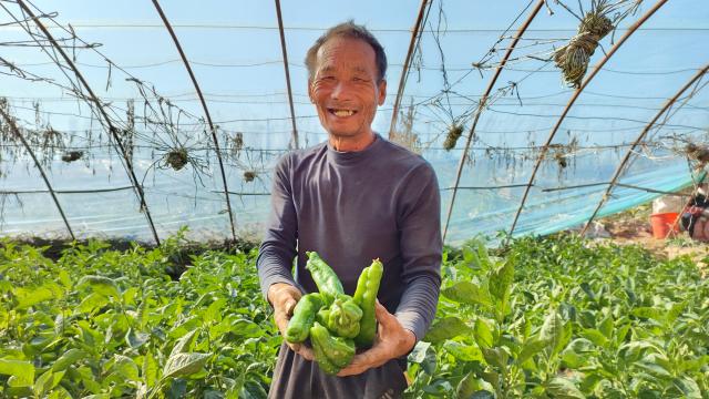 大棚种植户边永显有多年的大棚种植经验,今年他种了5个棚,为了保证蔬菜的安全放心,整个种植过程他只施农家肥,目前,辣椒、葫芦瓜等蔬菜陆续成熟上市,因蔬菜品质好的优势,这几年,边永显种植的蔬菜供不应求,收入也越来越好。