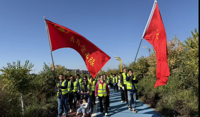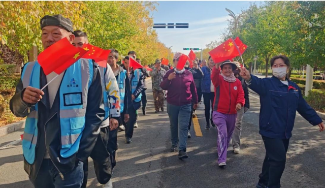 各支部精心落实,活动亮点纷呈。广建支部聚焦“文化凝聚”,组织职工沿“建设大厦—如意湖—将军山”徒步,途中开展“群龙取水”协作游戏,尾声集体合唱《歌唱祖国》,在山水间拉近职工距离,强化团队向心力;双建支部突出“暖人心怀”,首站带领参与者回顾企业奋斗历程,再通过城市展示中心的立体沙盘、动态影片,直观感受双河从过去到未来的蝶变,行程末的团圆午餐更让一线劳务人员倍感关怀;路桥支部践行“环保守护”,参与者身着“双河工建路桥分公司”反光背心,徒步将军山时弯腰捡拾垃圾,还向游客宣传环保理念,让“建设者即守护者”的责任意识深入人心,不少游客受此感染主动加入;腾龙支部侧重“价值认同”,在工会大楼、四馆一中心等建筑前,讲解员生动讲述“每一根桩基的故事”,家属们看到亲人参与建设的成果后,纷纷表示理解了一线工作的艰辛与意义。