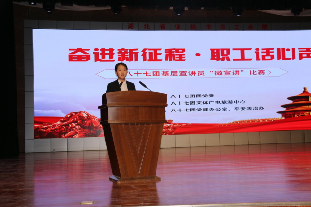 为凝聚基层职工奋进力量,推动党的理论与团场发展实践深度融合,10月24日,八十七团成功举办“奋进新征程 f职工话心声”基层宣讲员“微宣讲”比赛,来自全团各党支部的18名参赛选手同台竞技,以小切口讲述大主题,用真心话传递新使命。