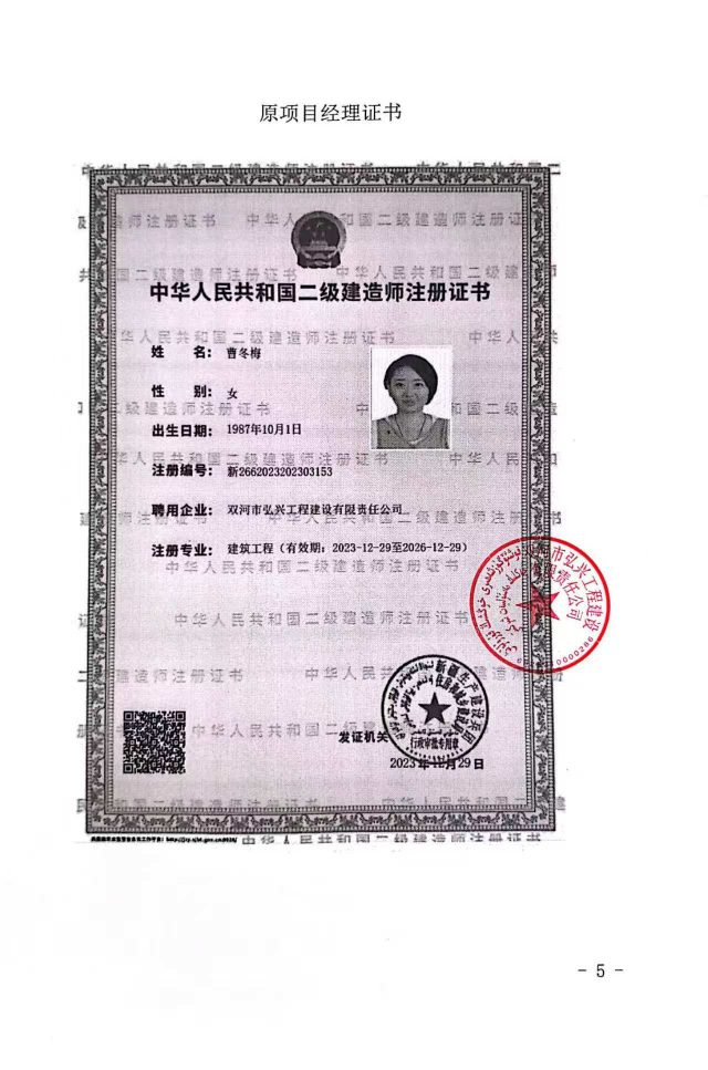 第五师博乐城区祥云小区老旧小区改造二标段施工项目经理变更公示