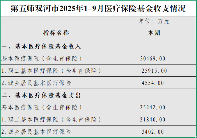 关于第五师双河市2025年1-9月医疗保险基金收支情况的公示