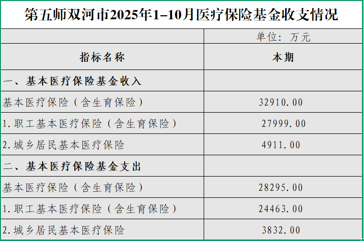 第五师双河市2025年1-10月医疗保险基金收支情况