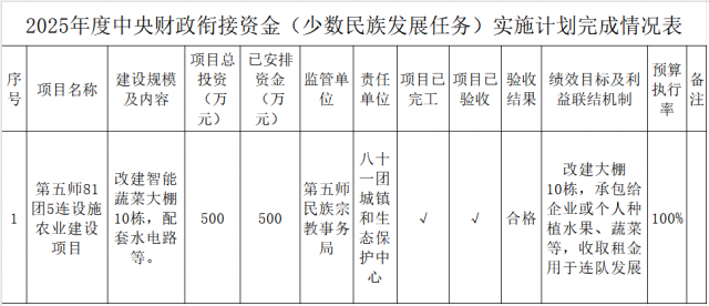 2025年度中央财政衔接资金(少数民族发展任务)实施计划完成情况表