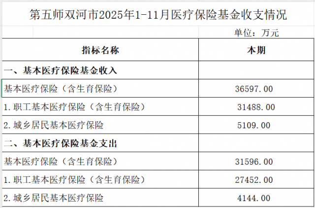 第五师双河市2025年1-11月医疗保险基金收支情况