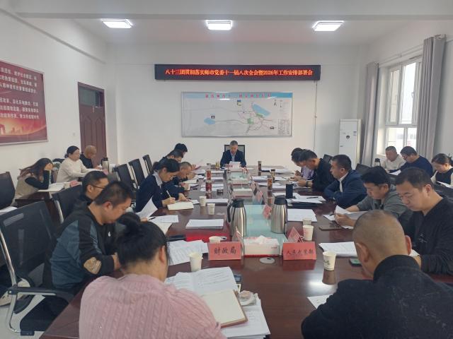 12月16日,八十三团召开党委扩大会议,专题传达贯彻师市党委十一届八次全会精神,科学谋划部署2026年重点任务,动员全团广大干部职工群众统一思想、凝聚共识、真抓实干,以实干担当推动团场经济社会高质量发展实现新突破,为“十五五”开局起好步、开好头筑牢根基。该团党委班子、机关事业单位负责人参加会议。