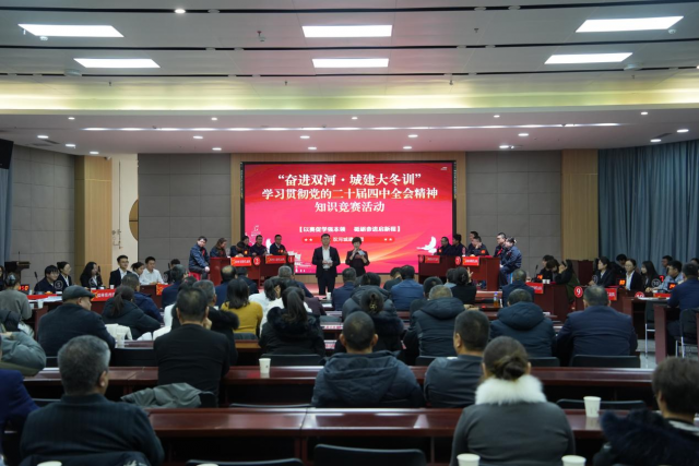 12月16日下午,双河城建集团学习贯彻党的二十届四中全会精神知识竞赛决赛在双河康养中心会议室火热开赛,现场气氛热烈、掌声频传。来自集团各单位、各职能部门的10支代表队同台竞技、比拼理论功底,最终双河市政公司代表队凭借扎实的知识储备和出色的临场表现斩获一等奖。