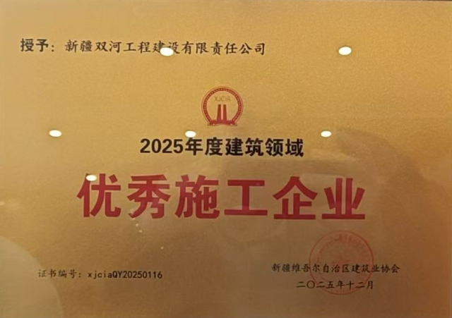 近日,新疆维吾尔自治区建筑业协会发布《关于公布2025年度自治区建筑领域施工企业优秀项目评价结果的通知》。新疆双河工程建设有限责任公司(以下简称“双河工建”)凭借全年卓越表现,蝉联2025年度自治区建筑领域“优秀施工企业”荣誉称号;公司总经理陈敏获评“优秀企业家”称号,实现企业荣誉与行业认可的双重突破。