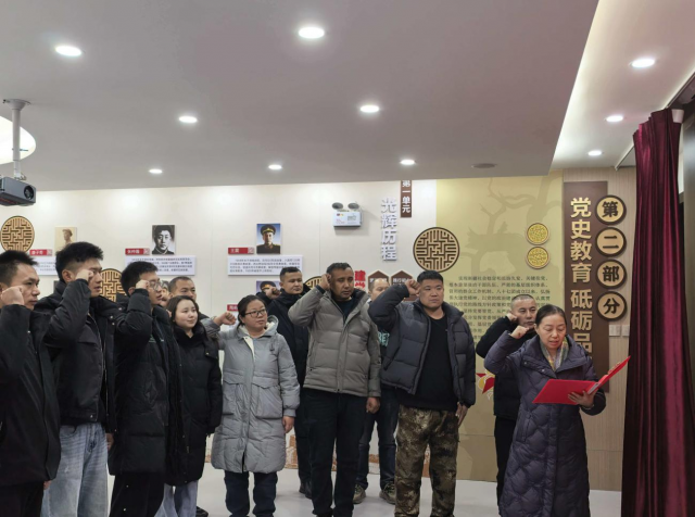 参观结束后,全体党员在陈列馆内庄严列队,举起右拳,重温入党誓词。铿锵有力的誓言回荡在展厅中,不仅是对入党初心的回望与坚守,更凝聚起退役军人职工们赓续红色血脉、勇担时代使命的决心。