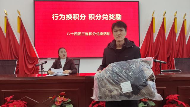 八十四团三连职工付浩说:“今天拿到这个奖品,我心里特别激动,感谢连队的积分平台,让我们的付出都能被看得到,这个荣誉对我来说是肯定,更是激励,新的一年,我会把这份鼓励转化为动力,继续努力,为连队的各项工作继续贡献自己的一份力,也希望能带动身边的职工一起进步。”