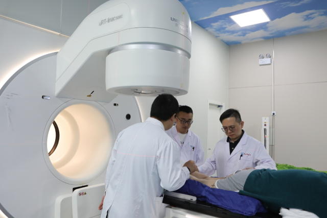 武汉大学人民医院支援第五师医院建成北疆首个肿瘤放疗中心室,湖北援疆医疗专家石磊为患者开展治疗服务。湖北省援疆工作前方指挥部五师工作队提供